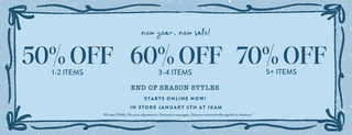 50% OFF 1-2 ITEMS, 60% OFF 3-4 ITEMS, 70% OFF 5+ ITEMS!