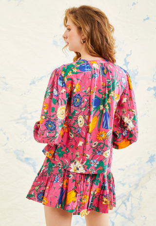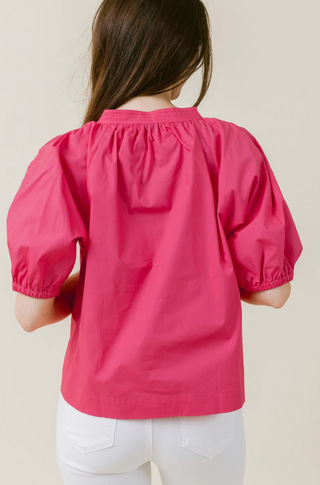 Erin Eyelet Flutter Sleeve Top in Caberet Pink