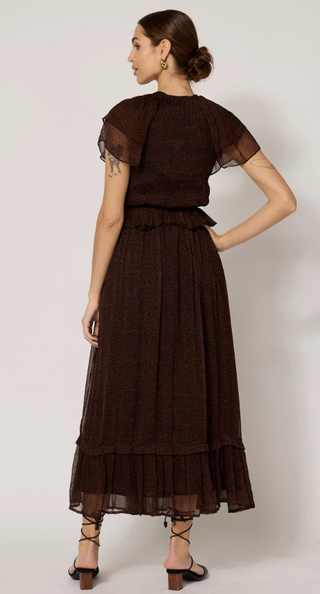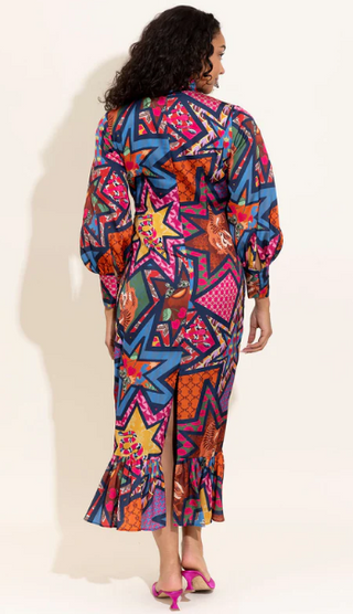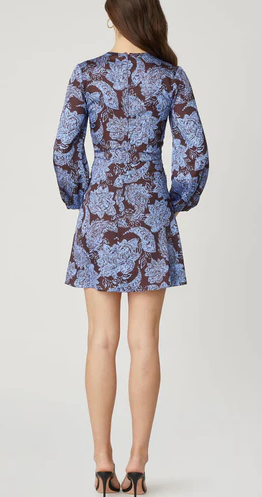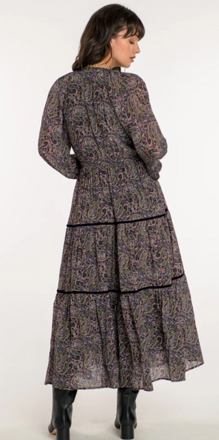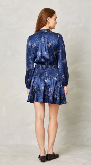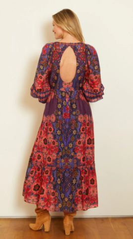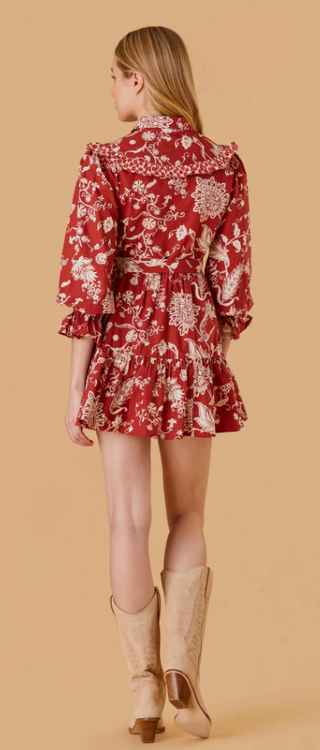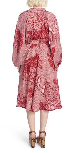 Long Sleeve Smocked Waist Dress in Aztec Floral Print