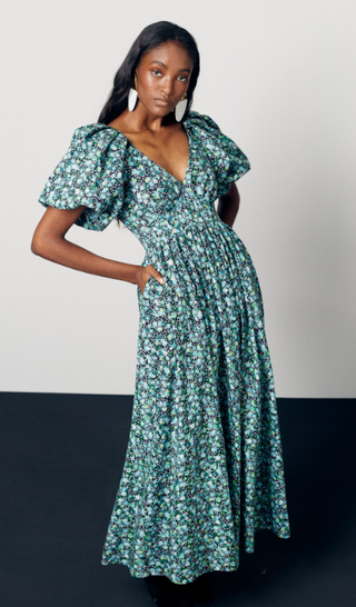 Kelli Short Sleeve Maxi Dress in Olive Geo