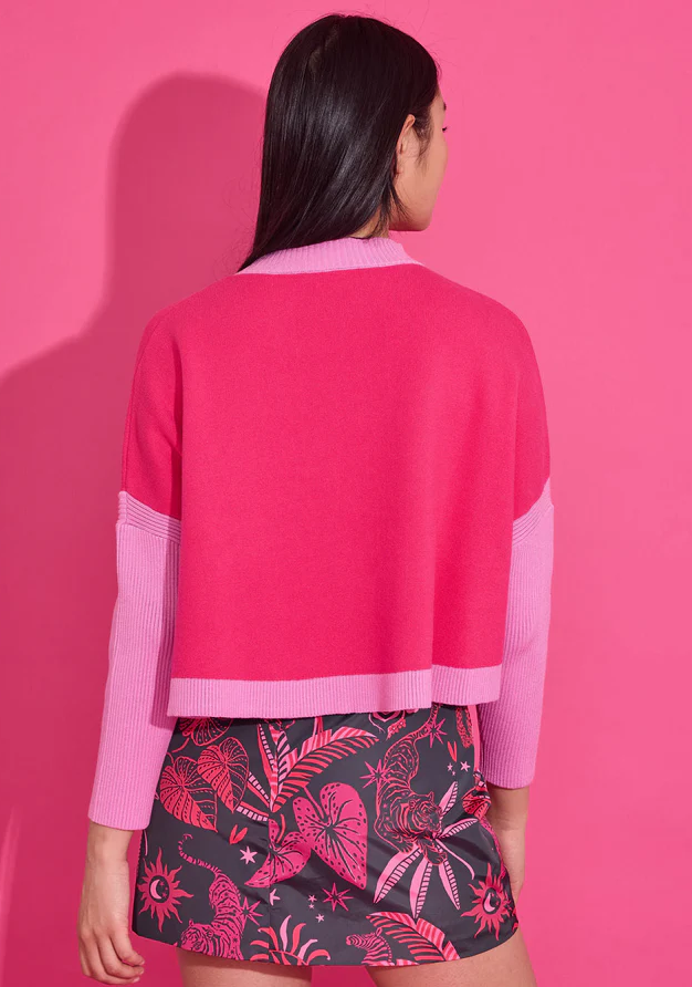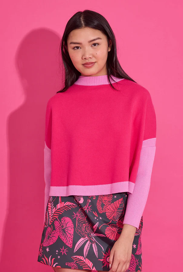 The Leona sweater is here in pink flamingo! Pair with the Vivian skirt and your favorite boots for the perfect head to toe look.