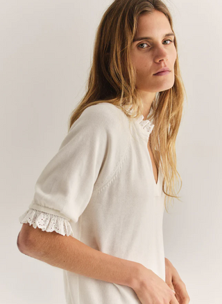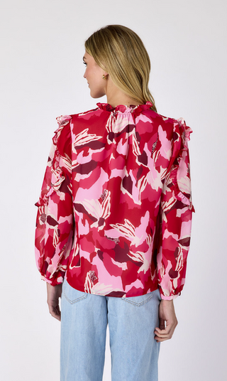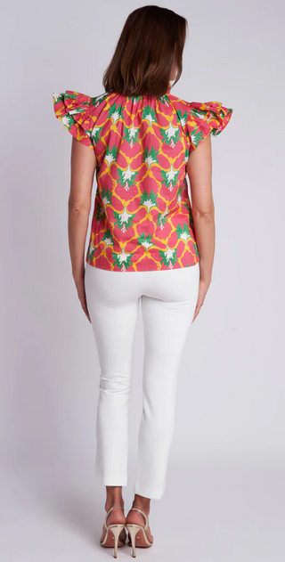 Erin Eyelet Flutter Sleeve Top in Caberet Pink