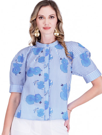 Lantern Sleeve Top in Bluebell Stripe